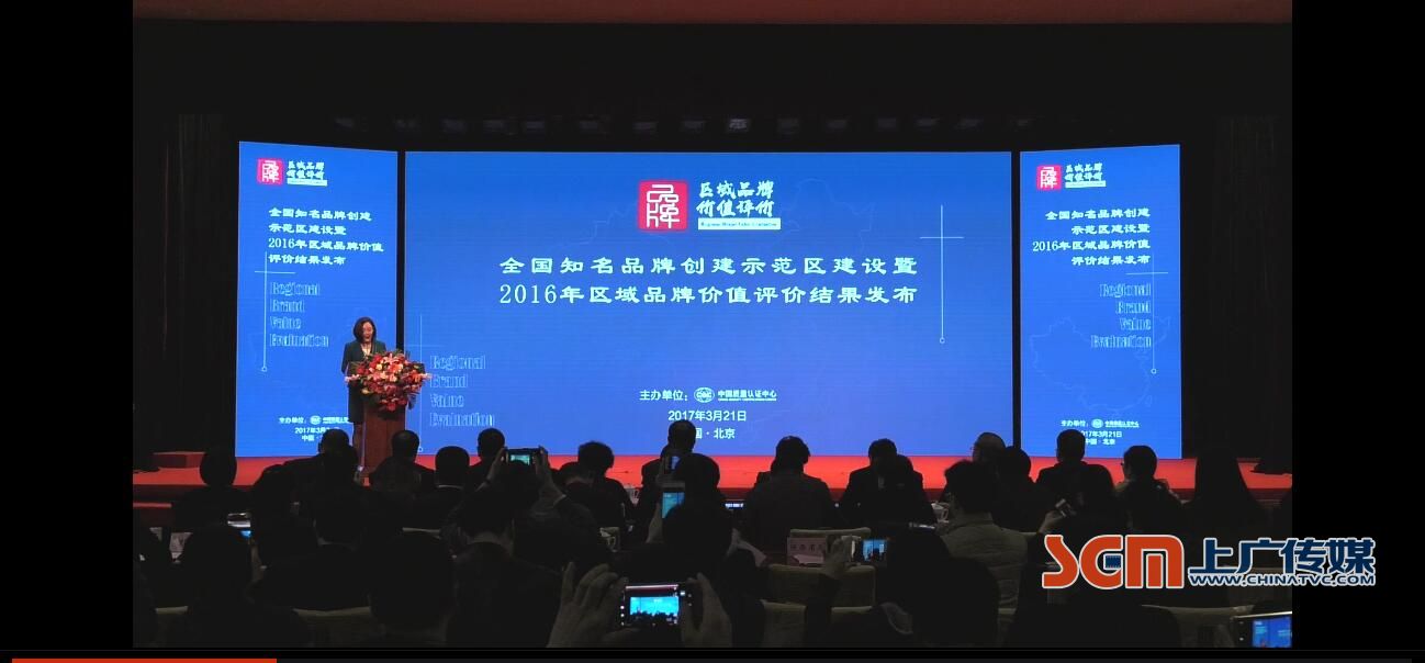 2017年3月21日,中國質量認證中心在北京召開全國知名品牌創建示范區建設暨2016年區域品牌價值評價結果發布會,現場發布了2016年區域品牌價值評價百強榜單及各行業評價結果。